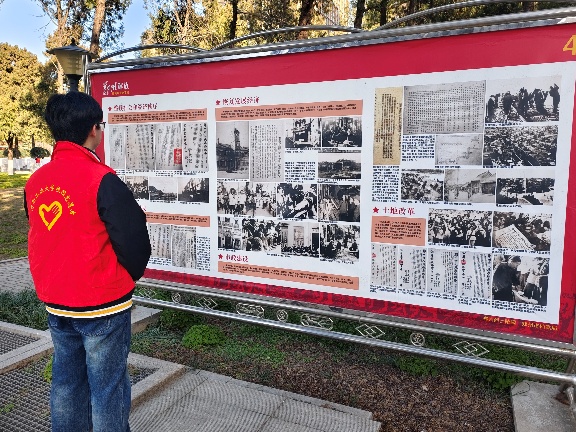 清扫工作结束后,队员们通过展板学习革命先烈们在烽火岁月里浴血奋战的英勇事迹。从抗日战争时期的敌后游击,到解放战争时期的冲锋陷阵,再到和平年代为守护人民生命财产安全牺牲的英烈故事,每一段历史都让队员们深受触动。队员们不时驻足凝视展品,认真聆听讲解,在心中筑牢铭记历史、缅怀先烈的信念。