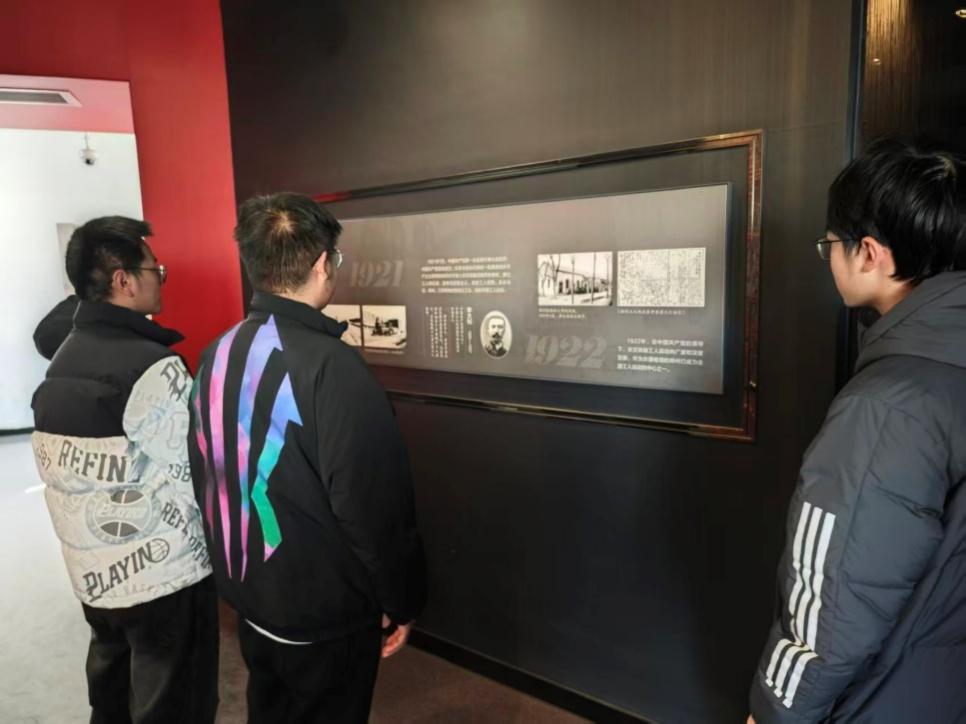 展厅内,声光电技术与文物史料相结合,生动再现了二七大罢工的壮阔历程。在英烈名录环绕的观影区,团员们集体观看主题影片,当林祥谦、施洋等先烈的事迹在银幕上重现时,现场鸦雀无声,唯有荧幕的光影在同学们专注的脸庞上流转。“以前在课本里了解过这段历史,但当亲眼看到这些实物史料,那种心灵的震撼是前所未有的。”实践团成员张同学感慨道,“先烈们为了争取自由和人权不惜牺牲生命,这种精神值得我们永远铭记。”