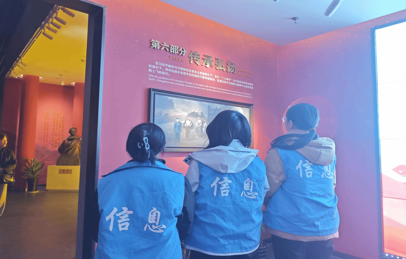 走进二七精神新时代传承展区,郑州城市发展的实景图片与二七精神的时代诠释交相辉映。团队成员围绕“二七精神在新时代的诠释与践行”展开专题研讨,结合信息科学与工程的专业背景,就如何将“坚守信仰、敢于斗争、团结奉献”的精神内核融入学习科研、志愿服务与社会实践进行了深入交流。