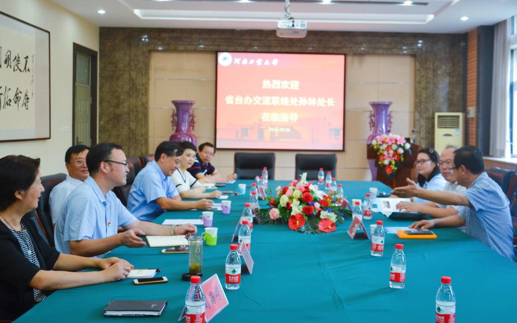 孙林主要向大家传达了政府鼓励两岸交流的政策,他表示,教育领域是豫台交流的重要部分,政府支持开放办学,更鼓励台湾师生到河南来任教、来学习,实现“来去平衡”,因为我们“两岸一家亲”,并对项目具体细节进行提出了建议意见。